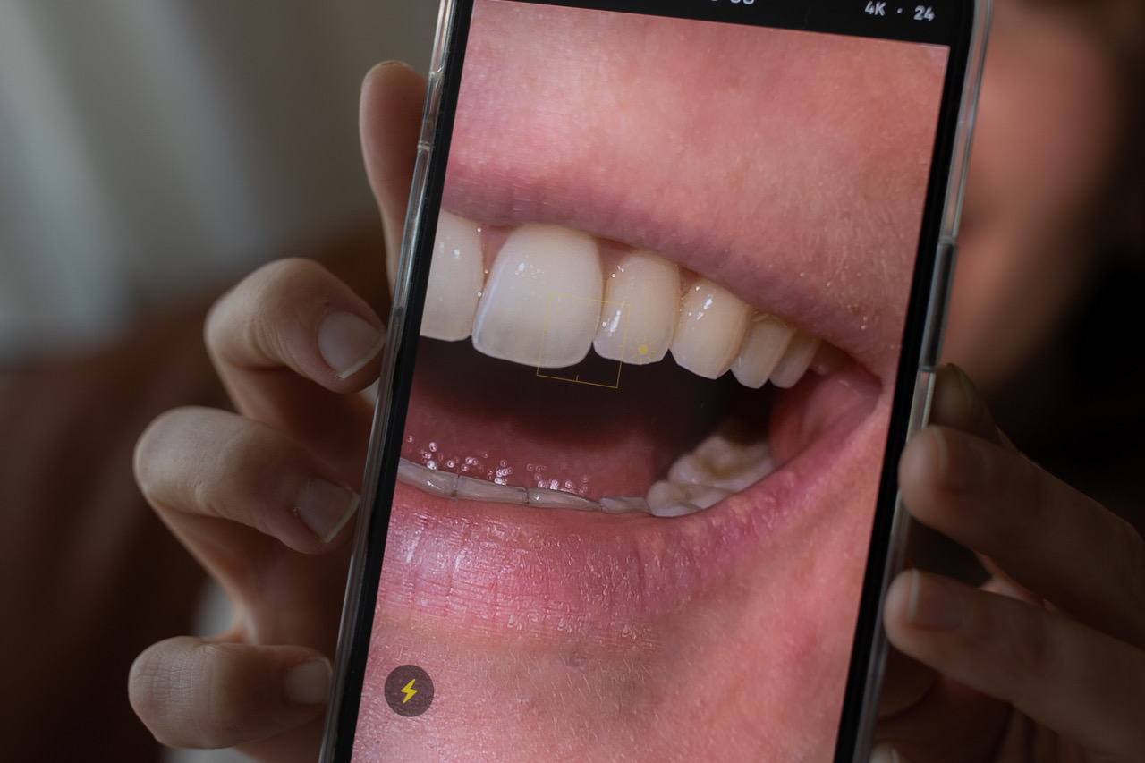 Videovastaanotolla asiantuntija saattaa pyytää sinua myös osoittamaan kameralla suuhusi. Chat-vastaanotolla kuvat riittävät.